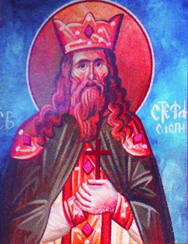 Свети Стефан Српски је био син деспота Ђурђа и Јерине Бранковић. Ђурађ је дао своју кћерку Мару за жену султану Мурату II, као жртву за спас народа и отаџбине. Касније је Мурат II узео Марину браћу Стефана и Гргура за таоце и ослепио их. Деспотску власт над Србијом примио је 1458. године, по упокојењу најмлађег брата Лазара, деспота. Ускоро је морао да се склони у Албанију, где се оженио Ангелином, Скендербеговом свастиком. Слеп и дубоко несрећан, али увек предан Богу, упокојио се 1468. године у Италији. Његове нетрулежне и чудотворне мошти Турцу су сасекли и запалили заједно са манастиром Крушедолом 1716.године. Остатак моштију му почива у обновљеном манастиру Крушедолу на Фрушкој гори, задужбини његовог сина Максима.